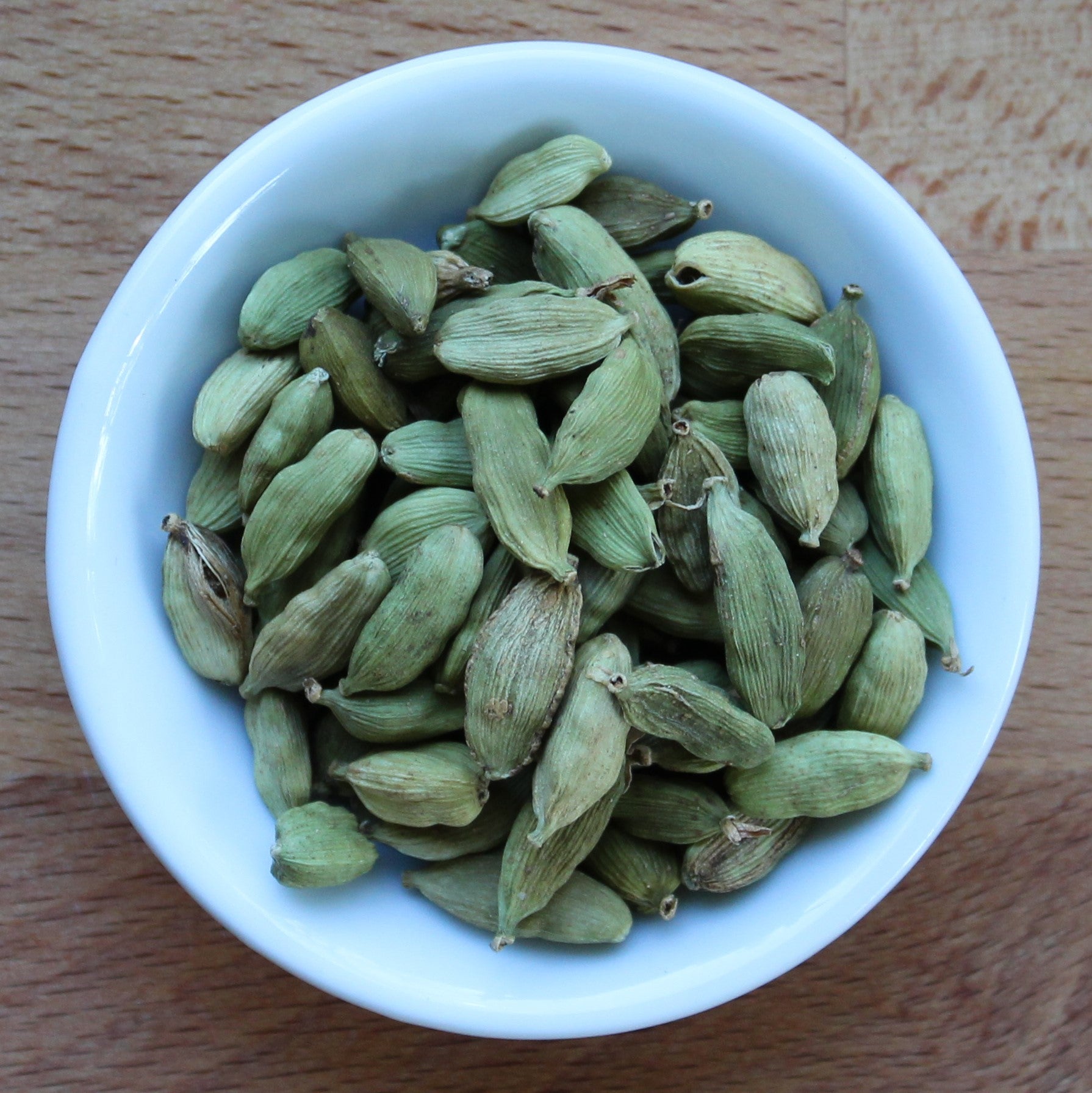 Native to Southern India, this rhizome (root) that is part of the ginger family has stiff stems with green pods that grow off of the stems that contain black seeds. Very floral, earthy, eucalyptus-like flavor. Cardamom can overpower quickly so don’t add too much at once.