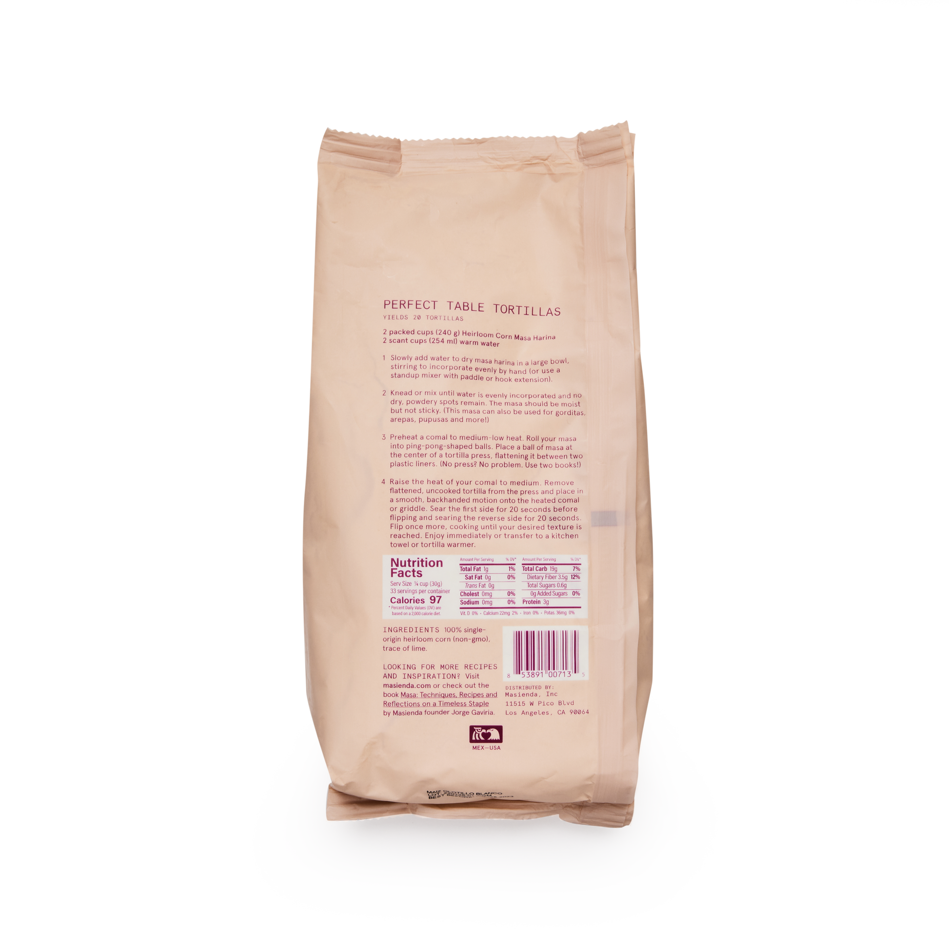 Our best-selling Heirloom White Corn Masa Harina is a fine-ground nixtamalized corn flour perfect for making not just tortillas but also other favorites like tostadas, tamales, pupusas, arepas and more. Its deep flavor comes from high quality heirloom corn, which is cooked, slow dried and milled to perfection in small batches. Never genetically modified. Always gluten-free.