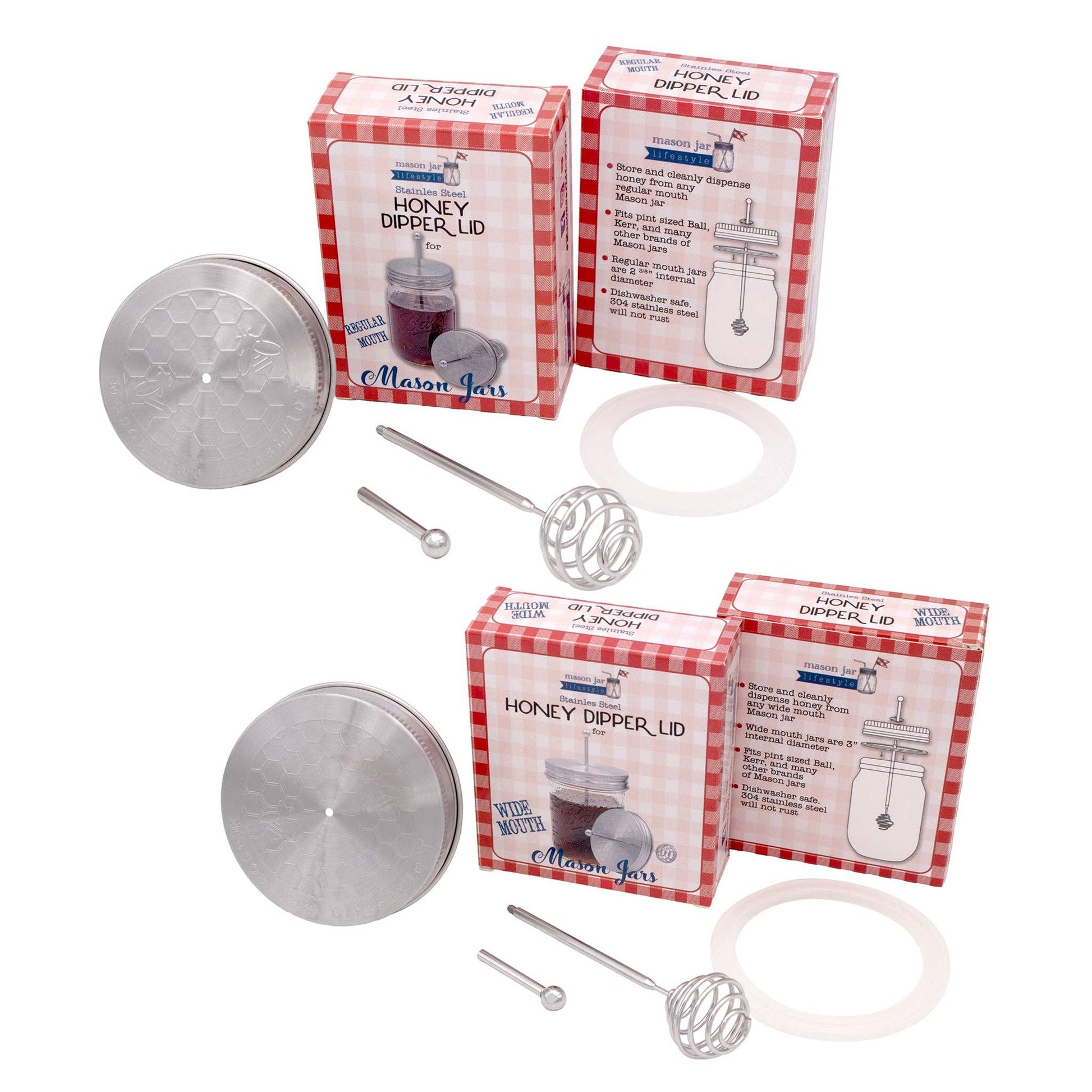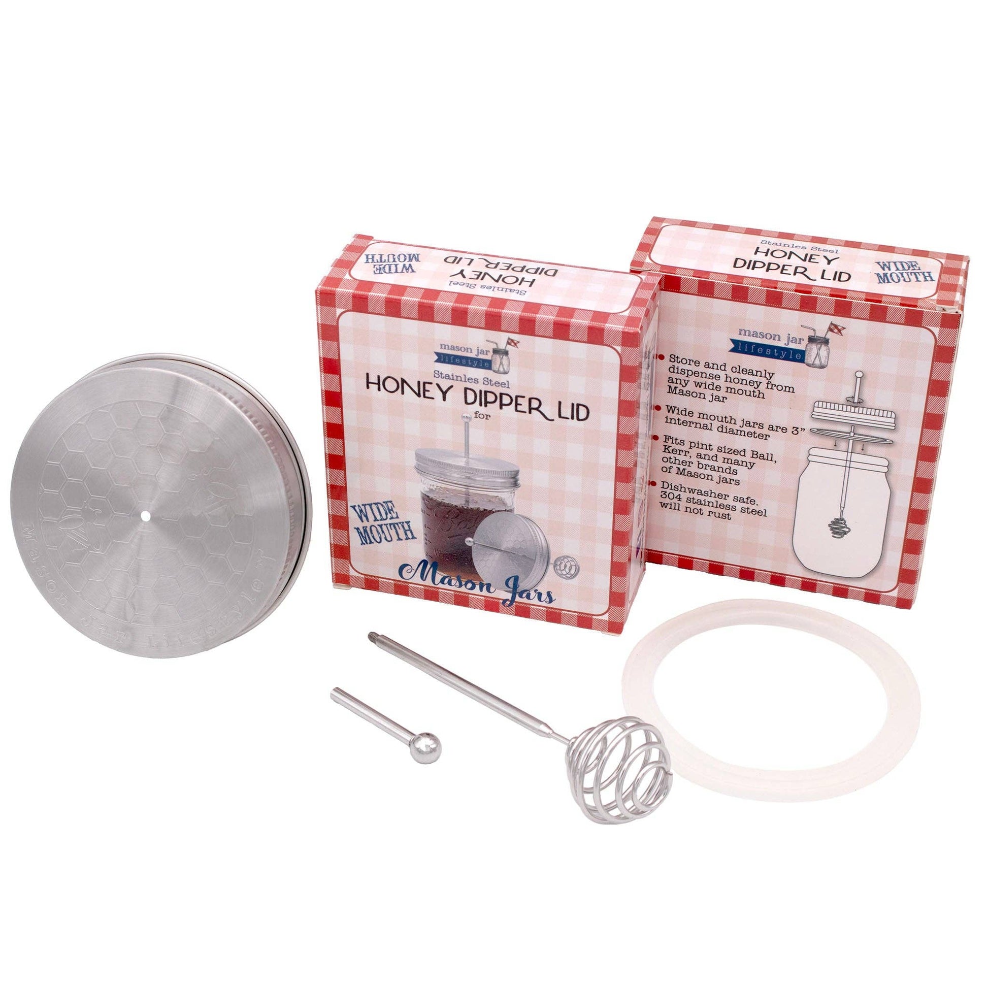 Honey Dipper Stainless Steel Lid for Mason Jars: Wide Mouth